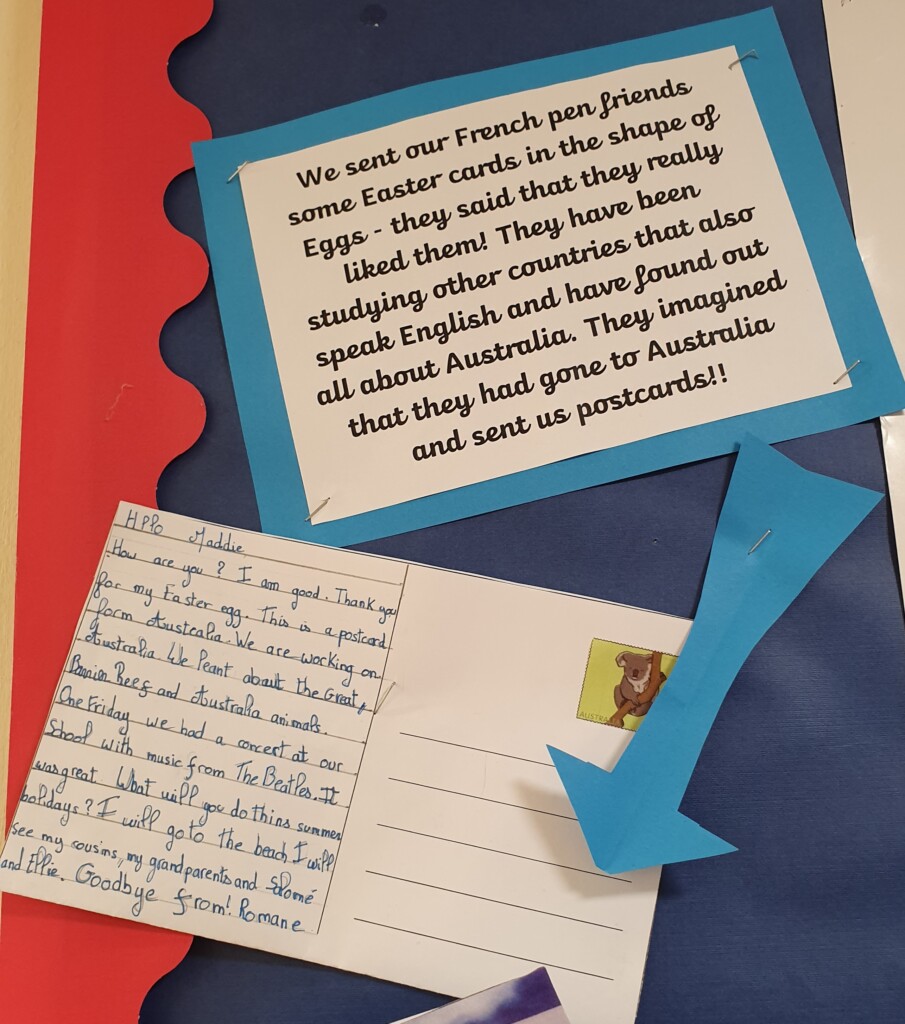 We have written letters and have got lots of replies. We have already noticed lots of similarities and differences. This has given our KS2 pupils a real reason for learning French.