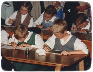 In 1993, to celebrate the 120th anniversary, the school went back to Victorian times for 2 days. No one was allowed in school unless in Victorian dress and everyone took part in role play, including the staff. The younger children used slates and chalk whilst the older children were given pens with a metal nibs, which they dipped into ink wells. Some children made clay models of the school, and others stitched samplers. A thanksgiving service was held in St Peter’s Church.